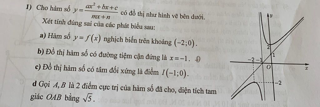 b) Đồ thị hàm số có đường tiệm cận đứng là x=−1. Đ