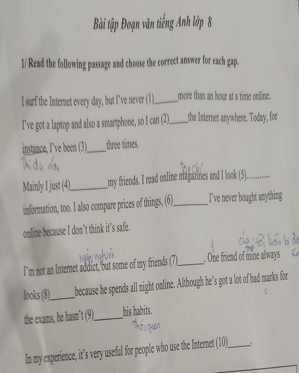 Bài tập Đoạn văn tiếng Anh lớp 8