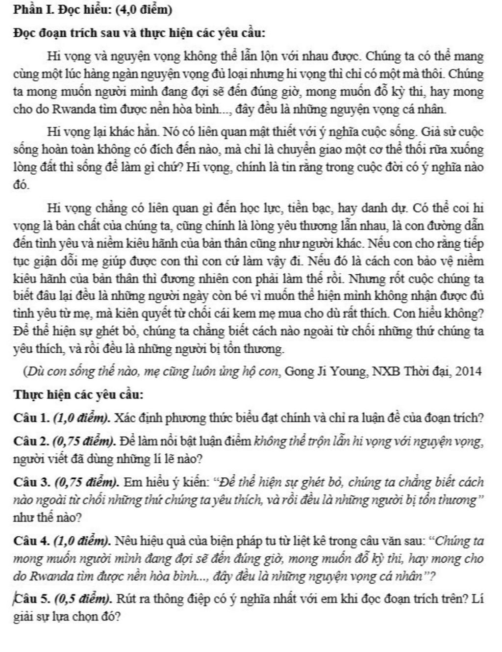 - Luận đề của đoạn trích: Hi vọng và nguyện vọng không thể lẫn lộn với nhau, trong đó hi vọng gắn liền với ý nghĩa cuộc sống, còn nguyện vọng chỉ là những mong muốn cá nhân.