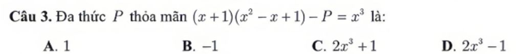 `(x+1)(x^2-x+1)-P=x^3`