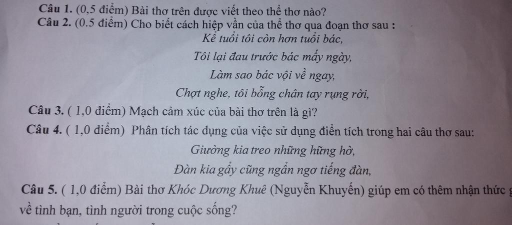 Câu 1. (0,5 điểm) Bài thơ trên được viết theo thể thơ nào?