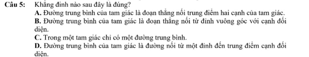 Đường trung bình của tam giác là đoạn thẳng nối trung điểm hai cạnh của tam giác.