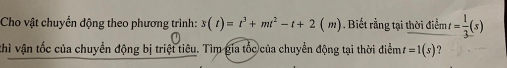 Tại `t=1/3` thì vận tốc bị triệt tiêu