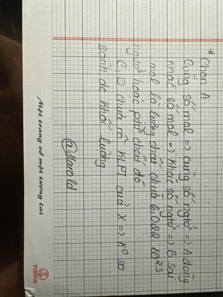 `A` Đúng, cùng số mol thì có cùng số nguyên tử