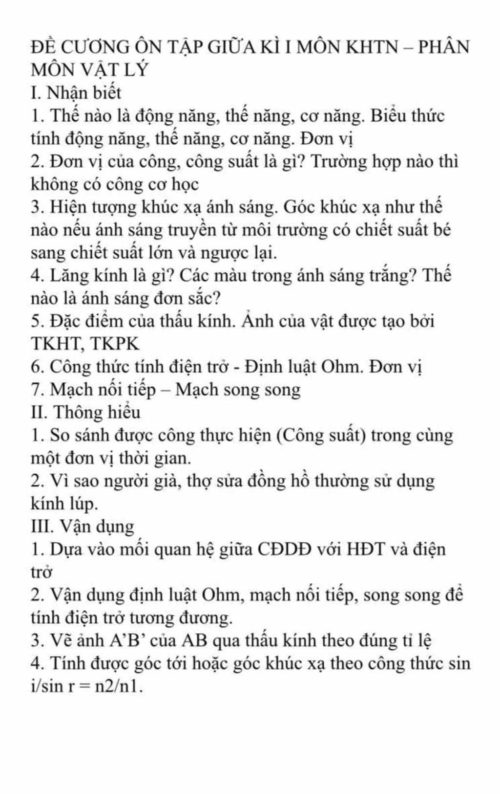 ĐỀ CƯƠNG ÔN TẬP GIỮA KÌ I MÔN KHTN – PHÂN