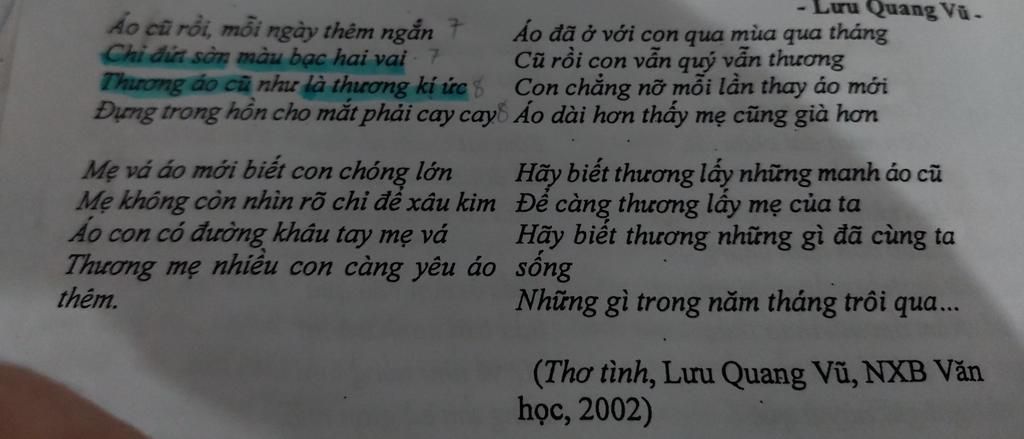 Đoạn thơ của Lưu Quang Vũ đầy cảm xúc và mang đến nhiều bài học quý giá. Hành động của các nhân vật trong đoạn trích gợi nhớ chúng ta về tình mẫu tử, lòng biết ơn và sự trân trọng những giá trị cũ kỹ nhưng đầy ý nghĩa. Một trong những bài học mà em tâm đắc nhất là tình yêu và sự trân trọng đối với những gì đã cũ, đặc biệt là tình mẹ. Từ việc mẹ vá áo cho con, chúng ta cảm nhận được sự chăm sóc, tình yêu thương vô bờ bến mà mẹ dành cho con. Những chiếc áo cũ không chỉ là vật dụng hàng ngày mà còn chứa đựng kỷ niệm và tình cảm. Qua đó, em hiểu rằng những điều cũ kỹ, dù có phai mờ theo thời gian, vẫn mang trong mình giá trị tinh thần vô cùng lớn.