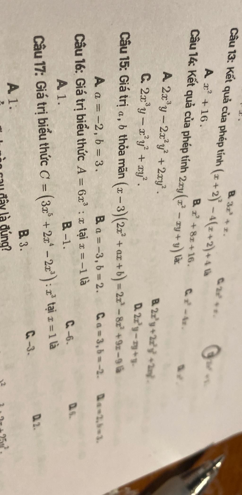 Câu 15: Giá trị a, b thỏa mãn ( z −3)(2x + ax + b = 2 - 8x +99 là