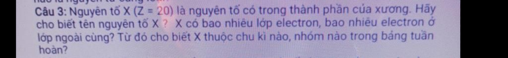 X có đthn là 2O⇒X ở ô số 2O⇒X là nguyên tố Calcium, kí hiệu là Ca