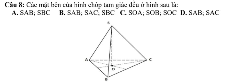 Các mặt bên của hình chóp tam giác đều ở hình sau là: