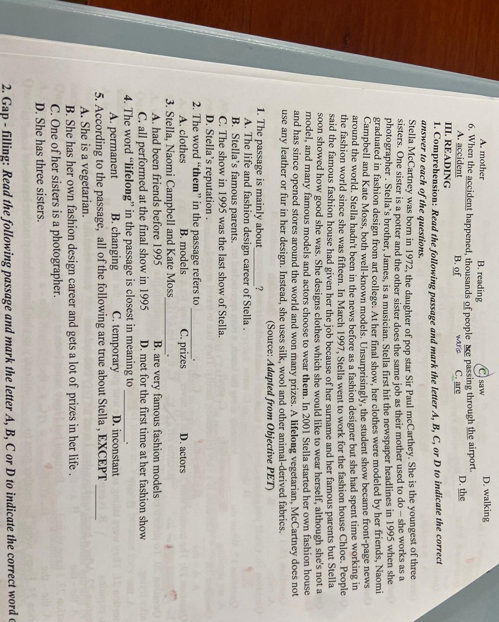 1. Comprehension: Read the following passage and mark the letter A, B, C, or D to indicate the correct