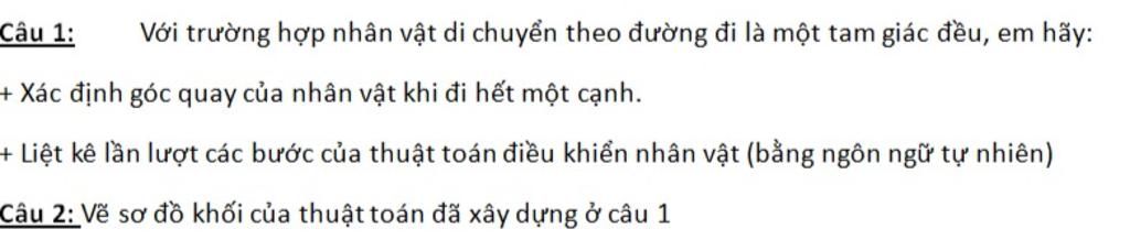 +) Các bước của thuật toán điều khiển nhân vật vẽ tam giác đều :