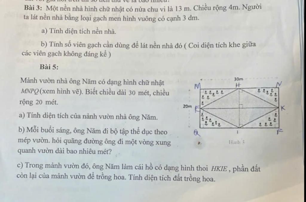 a, Diện tích mảnh vườn nhà ông Năm là: