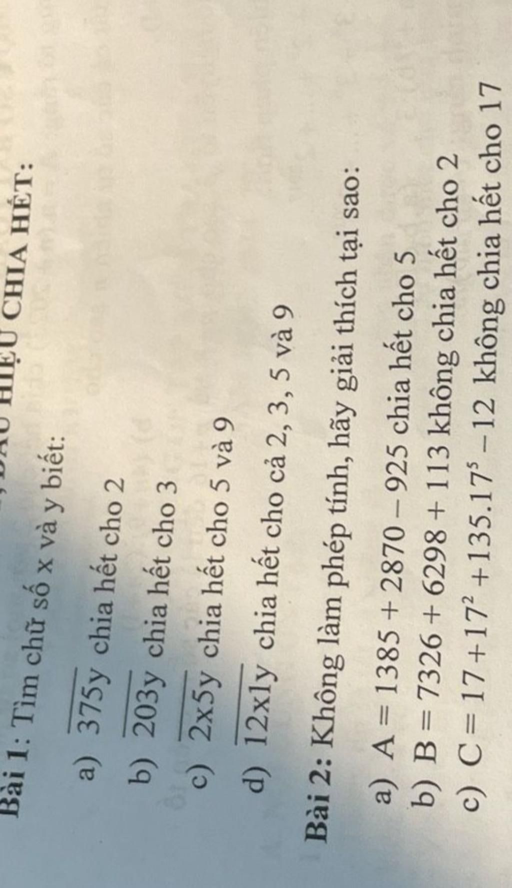 c, 12x1y chia hết cho 2; 3; 5; 9