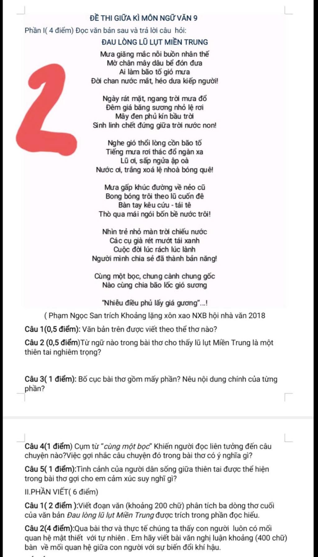 ĐỀ THI GIỮA KÌ MÔN NGỮ VĂN 9