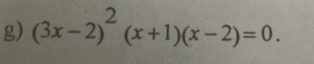 `g)` `(3x-2)^2 (x+1)(x-2)=0`