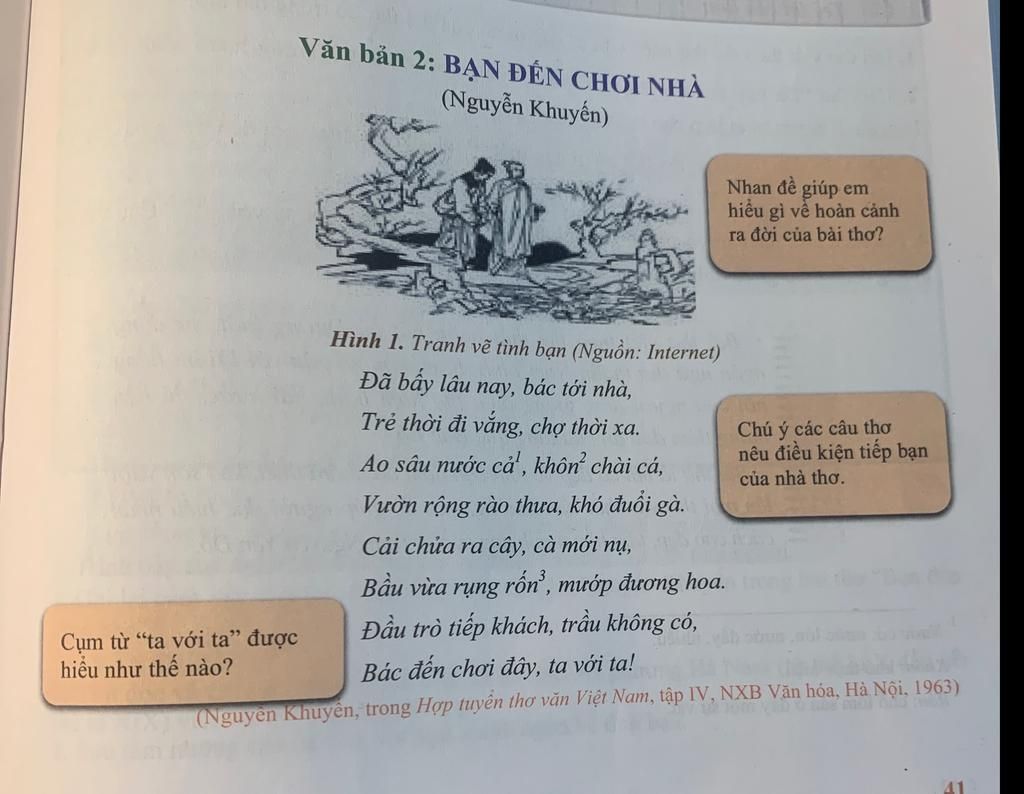 `-` Nhan đề giúp em hiểu bài thơ được tác giả Nguyễn Khuyến viết nhân một lần ông có người bạn đến chơi nhà.