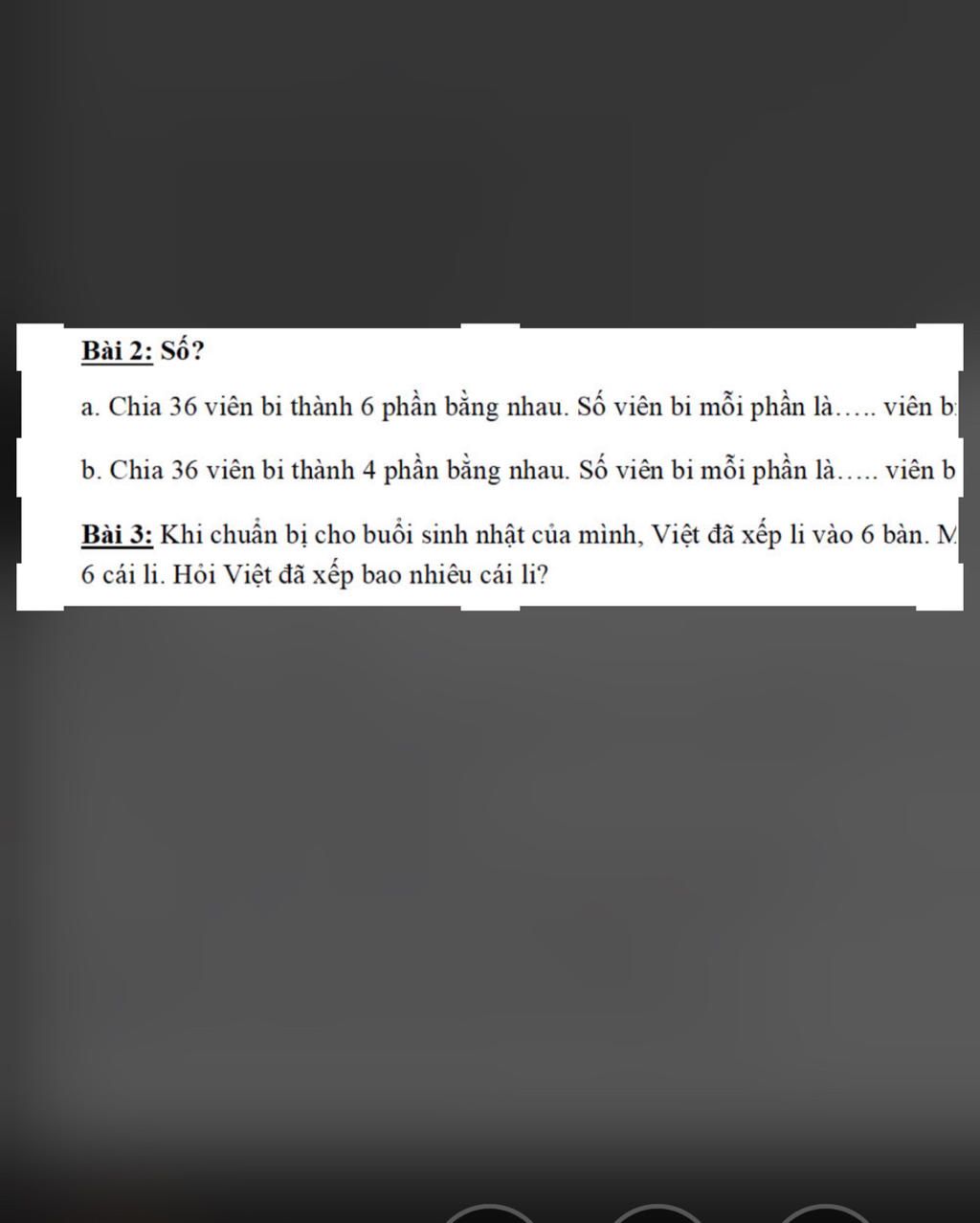 `36 : 4 = 9` `(` viên bi `)`