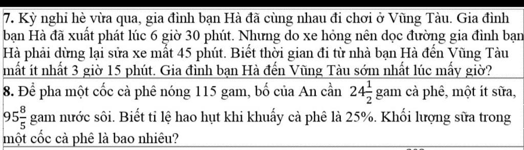 bạn Hà đã xuất phát lúc 6 giờ 30 phút. Nhưng do xe hỏng nên dọc đường gia đình bại