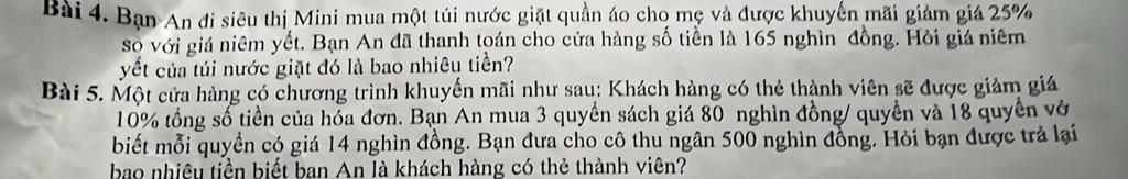 Bạn An mua hết số tiền là (có tính thẻ thành viên):