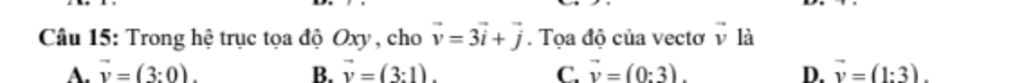 `->` Toạ độ của `\vec(v)` là: `\vec(v)=(3;1)`