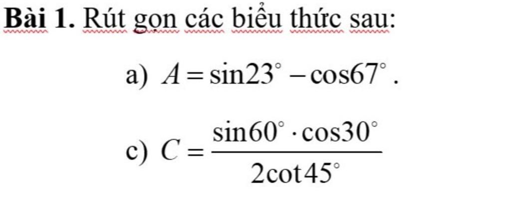 a)$A=sin23^{0}-cos67^{0}$