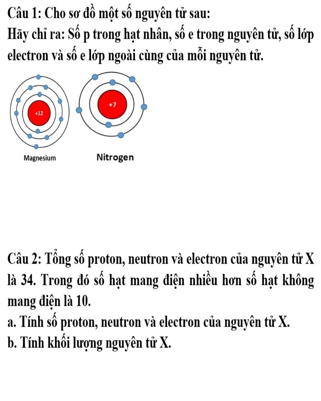 số p trong N (Nitrogen) =+7, tương tự câu trên e=-7