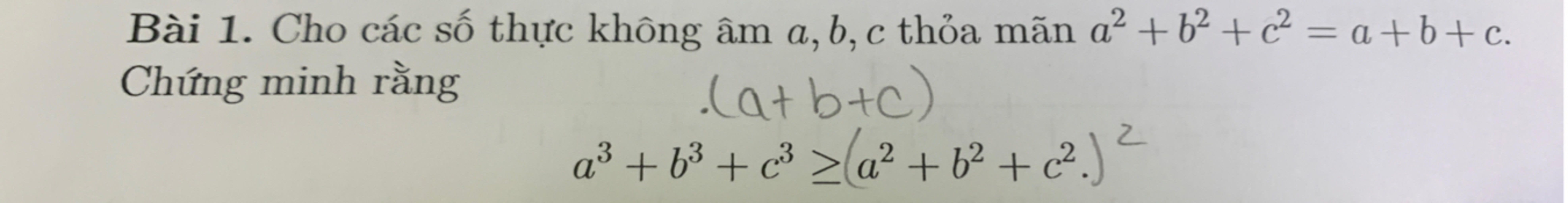 $\to(a^3+b^3+c^3)(a^2+b^2+c^2)\ge (a^2+b^2+c^2)^2$