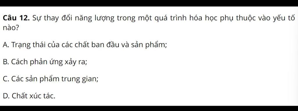`->` Sự thay đổi năng lượng trong quá trình hóa học chỉ phụ thuộc vào "chất phản ứng" và "sản phẩm"