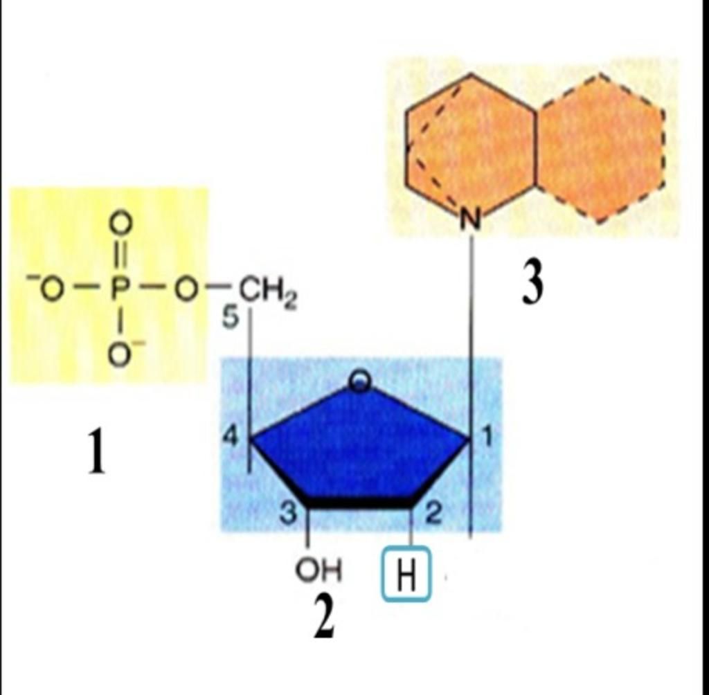 `-` 1 gốc đường `C_5H_10O_4` → Đường deoxyribose `(2)`