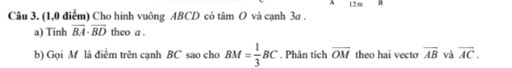 Câu 3. (1,0 điểm) Cho hỉnh vuông $A B C D$ có tâm $O$ và cạnh $3 a$.