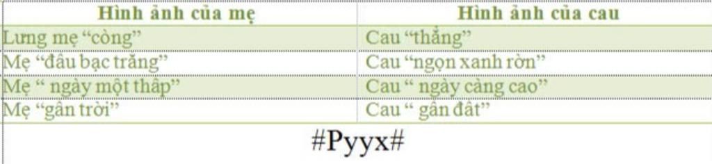 ` to ` T/d : Hình tượng của “mẹ” được hiện lên một cách cụ thể sinh động và rõ ràng hơn trong tâm trí độc giả