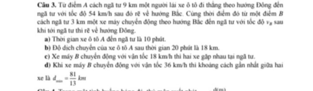 Câu 3. Từ điểm A cách ngã tư 9 km một người lái xe ô tô đi thẳng theo hướng Đông đến