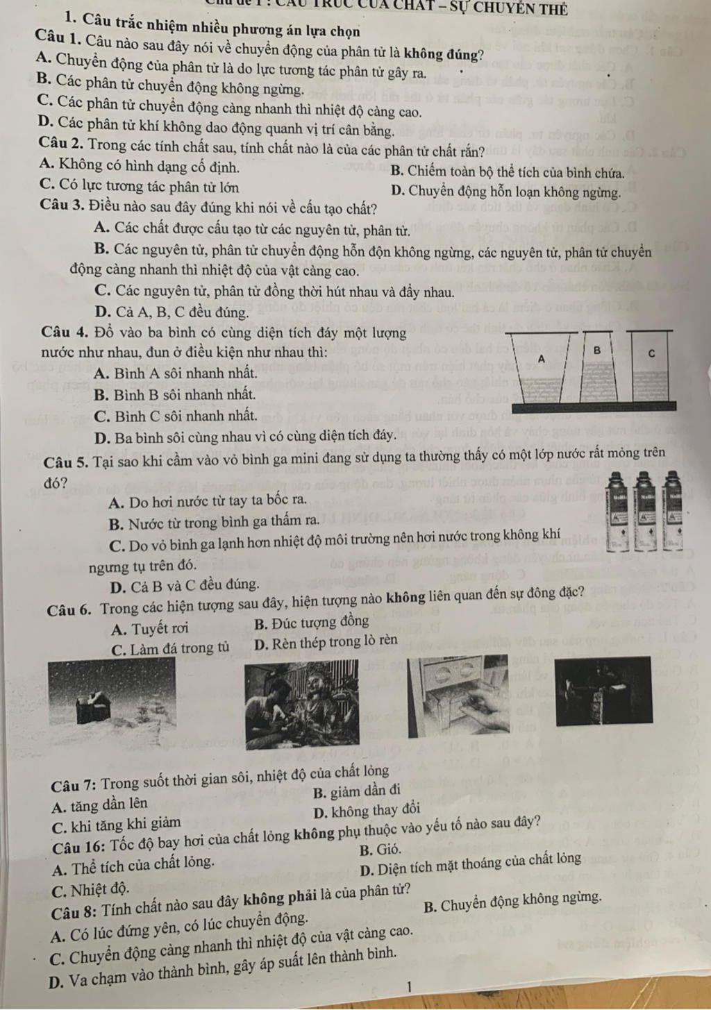 `2)` A là tính chất của chất lỏng và chất khí, B là tính chất của chất khí, D: Các phân tử chất rắn dao động tại chỗ, còn dao động hỗn loạn là chất lỏng và chất khí.