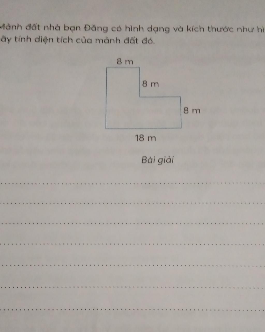 Mảnh đất nhà bạn Đăng có hình dạng và kích thước như hình trên . Hãy tính diện tích của mảnh đất đó