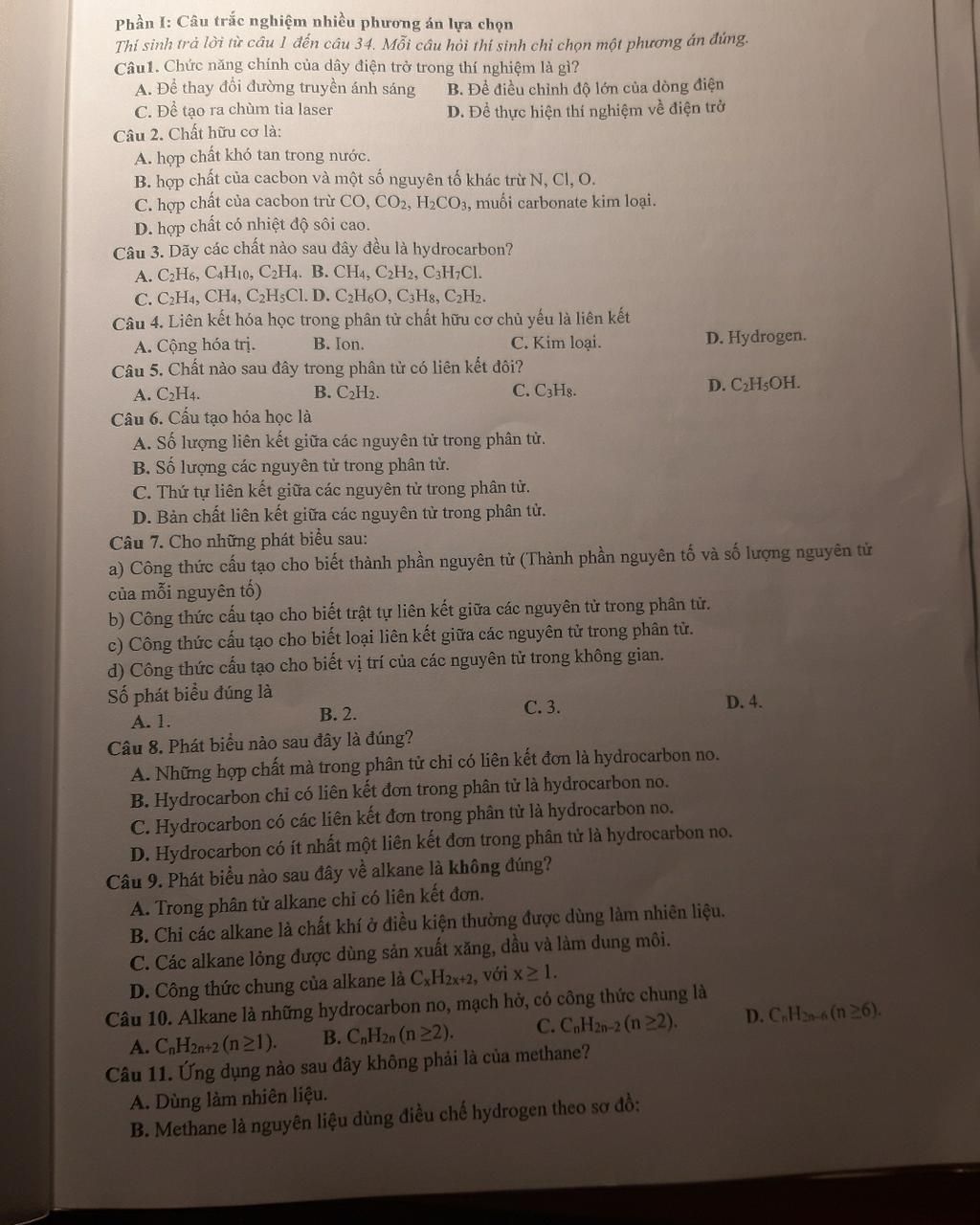 Thi sinh trả lời từ câu 1 đến câu 34. Mỗi câu hỏi thí sinh chỉ chọn một phương án đúng.