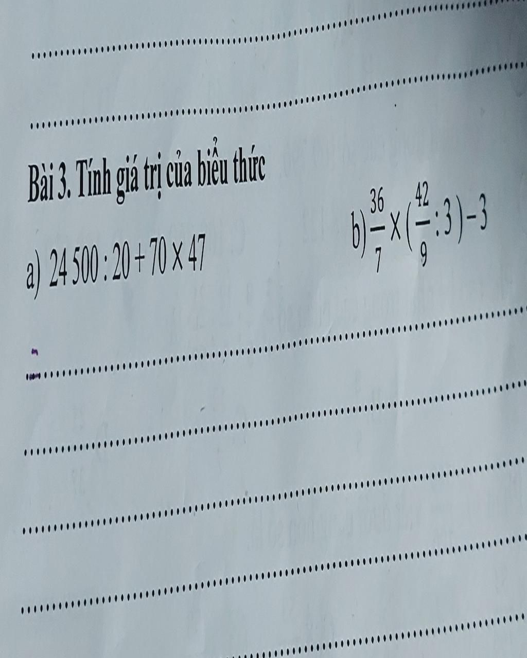 `b) 36/7 xx (42/9 : 3) - 3`