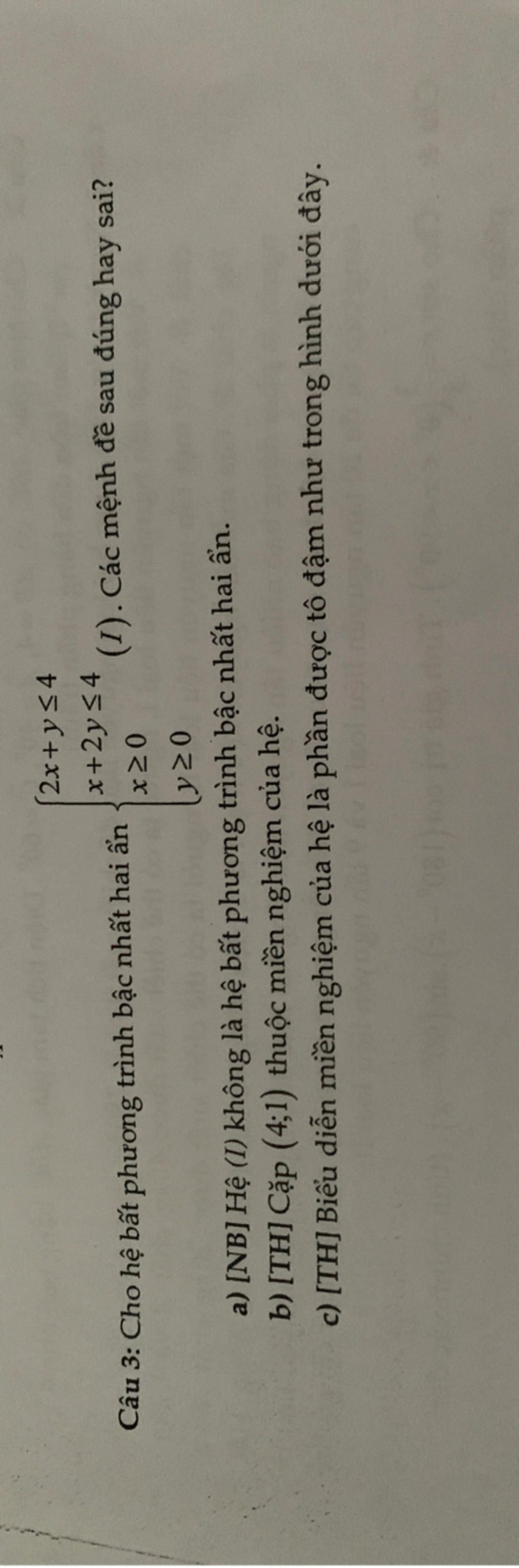 b) [TH] Cặp (4;1) thuộc miền nghiệm của hệ.