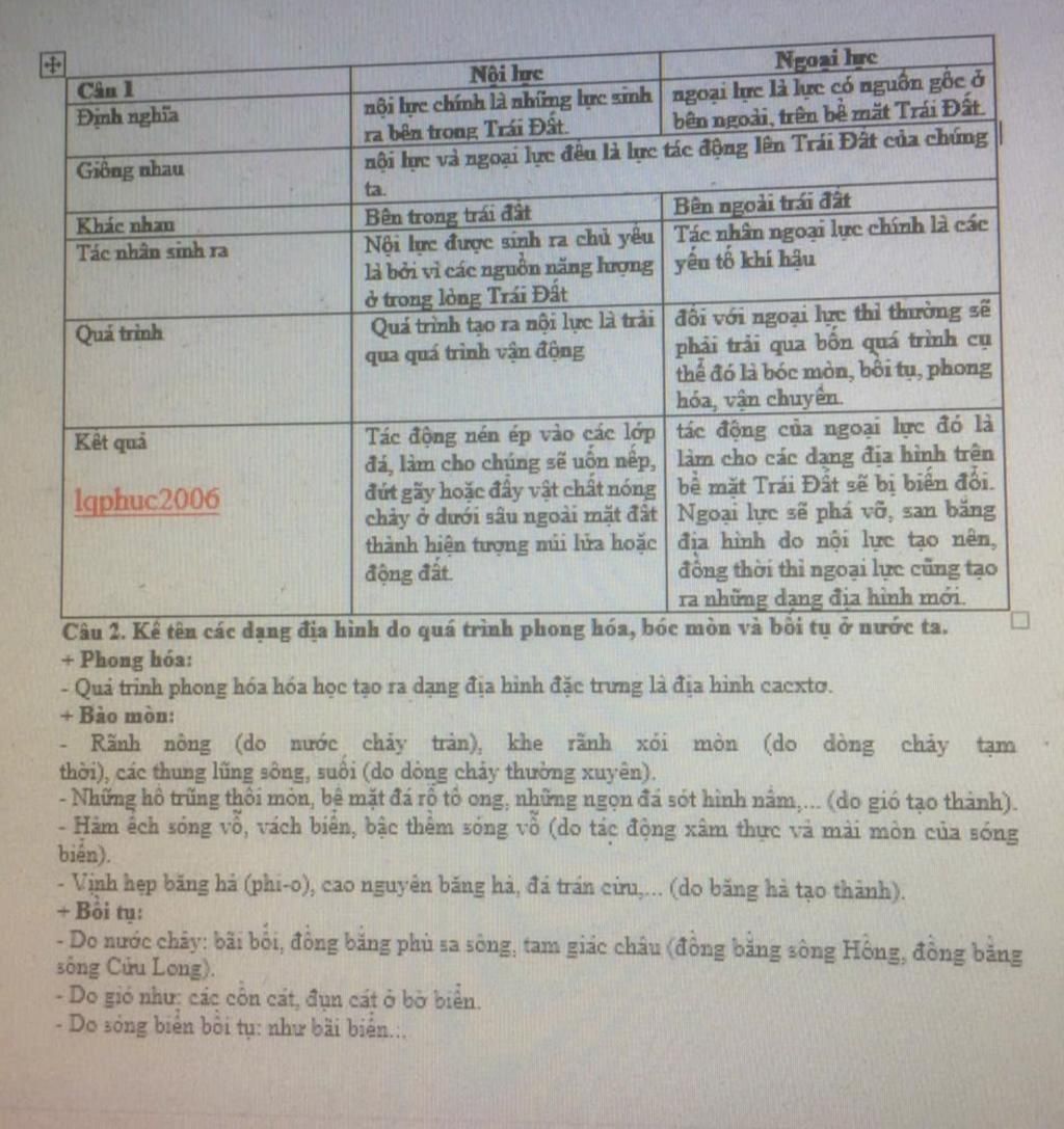 1. So sánh nội lực và ngoại lực. (Điểm giống và khác nhau (phạm vi, thời gian, tác nhân, các quá trình, kết quả)