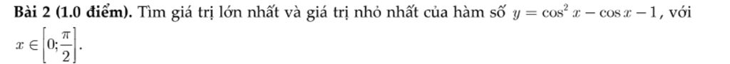 `-> Max=-1` tại `x=0` hoặc `x=pi/2`