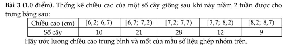 `=(6,45xx10+6,95xx21+7,45xx28+7,95xx12+8,45xx9)/(10+21+28+12+9)~~7,38cm`