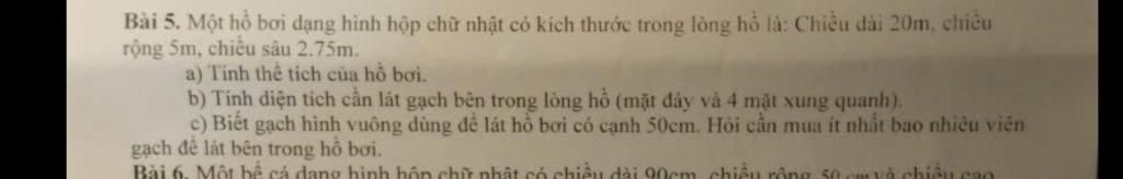 Cần mua ít nhất số viên gạch để lát bên trong hồ bơi là :