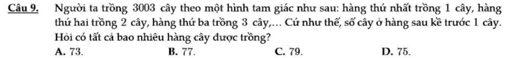 `->(a.(a+1))/2=3003` với `a` là số hàng cây