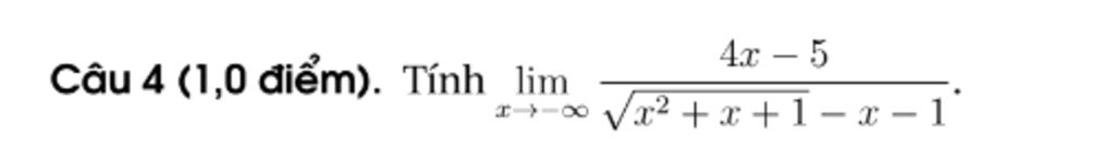 `lim_[x->-infty][4x-5]/[sqrt[x^2+x+1]-x-1]`