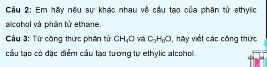 Câu 2: Em hãy nêu sự khác nhau về cấu tạo của phân tử ethylic