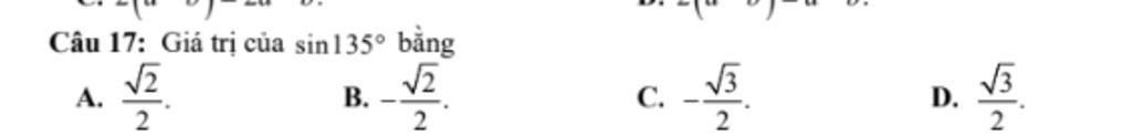 `sin135^o = sin(180^o - 135^o) = sin45^o = \sqrt{2}/2`