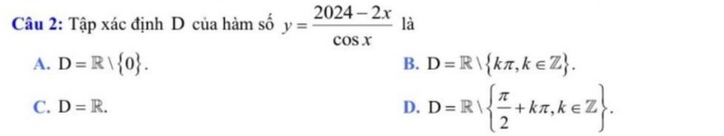 `->` TXĐ : `D = RR\{\p/2 + k\pi , k in ZZ }`