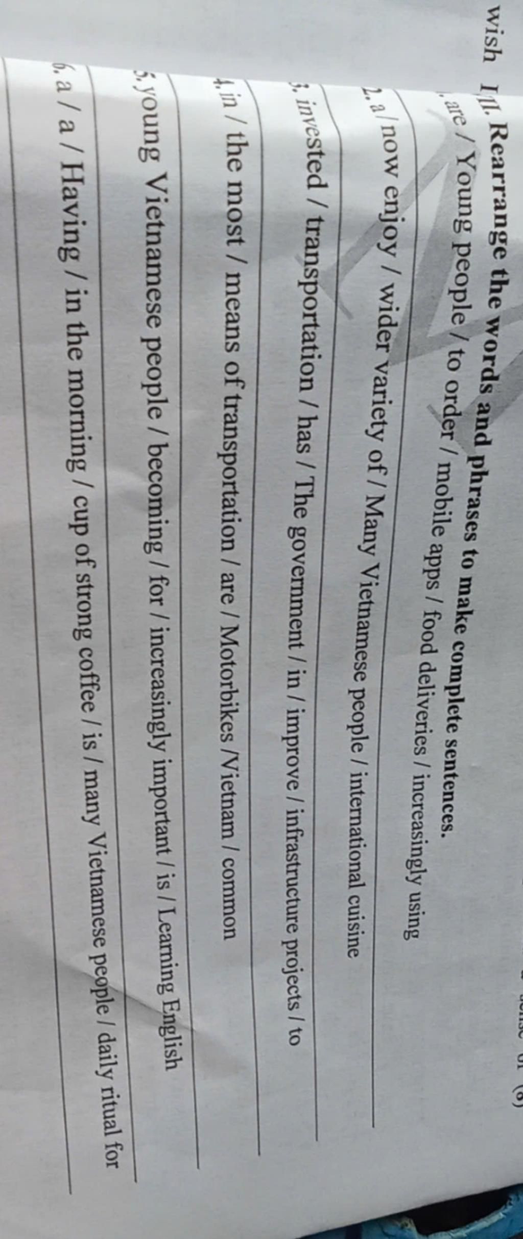 5.Learning English is becoming increasingly important for young Vietnamese people.