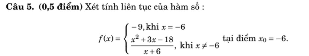 `->` Hàm số liên tục tại `x = -6`