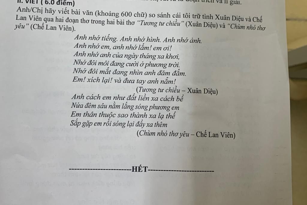 Anh/Chj hãy viết bài văn (khoảng 600 chữ) so sánh cái tôi trữ tình Xuân Diệu và Chế Lan Viên qua hai đoạn thơ trong hai bài tho "Tương tư chiều" (Xuân Diệu) và "Chùm nhỏ thơ yêu" (Chế Lan Viên).