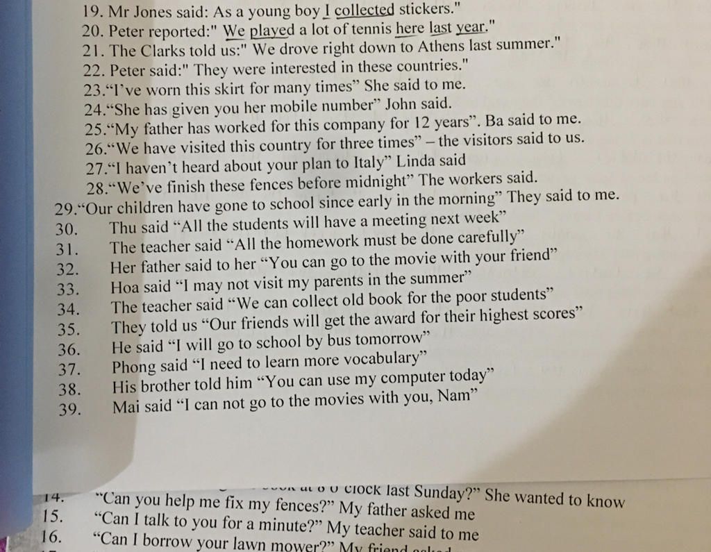 39. Mai told Nam that she could not go to the movies with him.